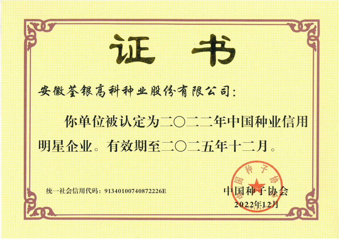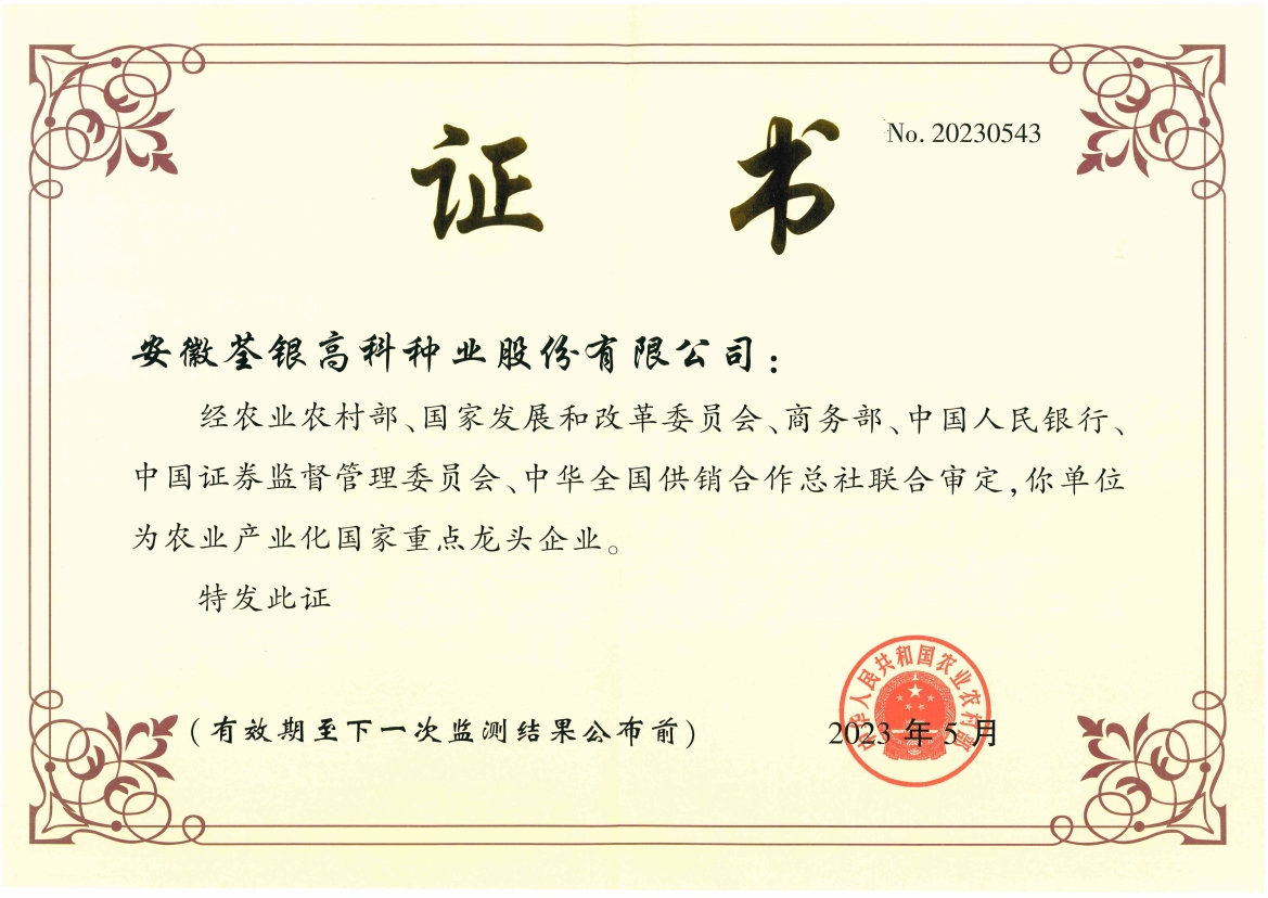 安徽荃銀高科種業(yè)股份有限公司是一家“以種業(yè)為核心、農(nóng)業(yè)服務(wù)為延伸、探索和創(chuàng)新農(nóng)業(yè)多元化發(fā)展”的現(xiàn)代高科技種業(yè)上市公司,證券代碼:300087。公司注冊(cè)資金9.47億元,系“中國(guó)種業(yè)領(lǐng)軍企業(yè)、農(nóng)業(yè)產(chǎn)業(yè)化國(guó)家重點(diǎn)龍頭企業(yè)、國(guó)家高新技術(shù)企業(yè)、農(nóng)業(yè)部首批農(nóng)作物種子育繁推一體化企業(yè)、中國(guó)種業(yè)信用明星企業(yè)"。在國(guó)內(nèi)控股子公司20多家,在國(guó)外設(shè)立分支機(jī)構(gòu)4家,良種銷售至全國(guó)20多個(gè)?。ㄊ小^(qū)),出口覆蓋20多個(gè)國(guó)家與地區(qū),種業(yè)綜合實(shí)力、雜交水稻研發(fā)、推廣及海外業(yè)務(wù)規(guī)模均居全國(guó)種子企業(yè)前2位。